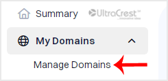 3. Click on My Domains from the left-side menu, then select Manage Domains in the drop-down.
