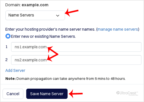 6. Enter your nameservers in the provided text boxes and click Save Name Server to save your changes.