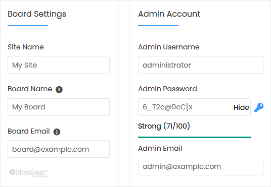 - Admin Username: Your new MyBB username (for security reasons, do not use the administrator or the admin username).