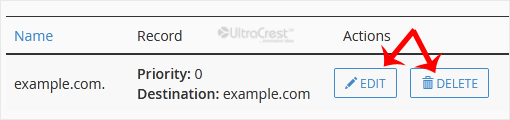 5. Locate the CNAME Record you want to edit or remove. Should you wish to edit a CNAME record, click on Edit. Modify the details, and click on Save Record. Removing a record can be done with Delete option.